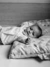 Quand on veut mettre bébé dans son berceau après qu’il se soit endormi dans nos bras, le fait de le pencher le réveille et il pleure : c’est le réflexe de Moro.